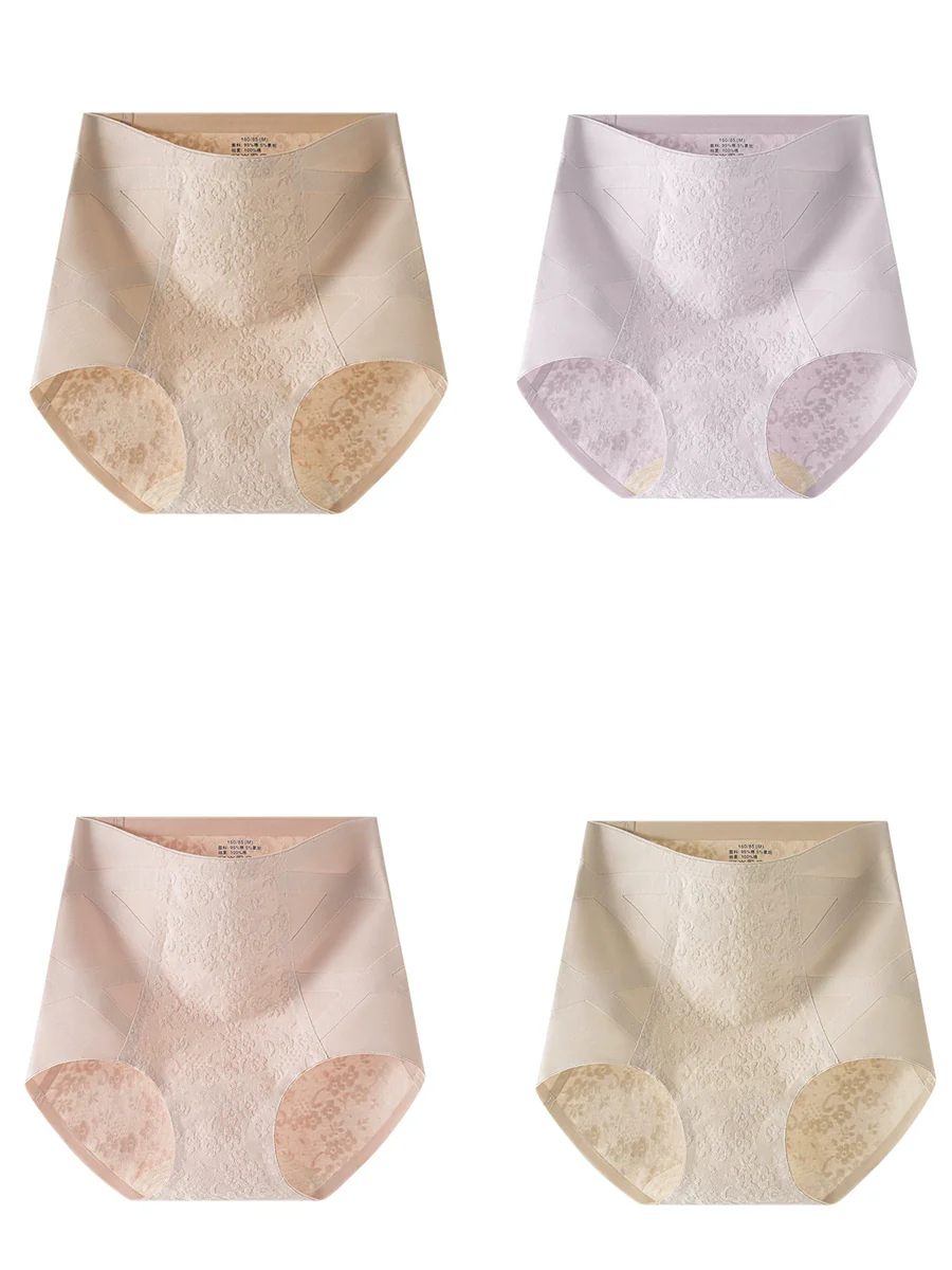 4 Pieces Women Artsy Jacquard High Waist Underwear