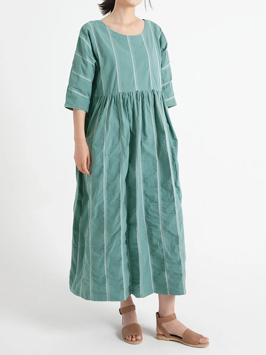 Plus Size Cotton Casual Summer Half Sleeve Loose Pleated Dress