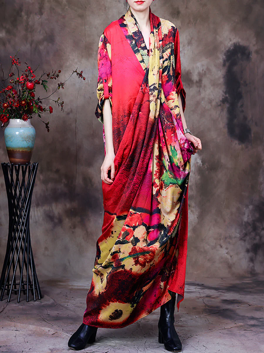 Plus Size -Drape Floral Vintage Women Retro Maxi Dress