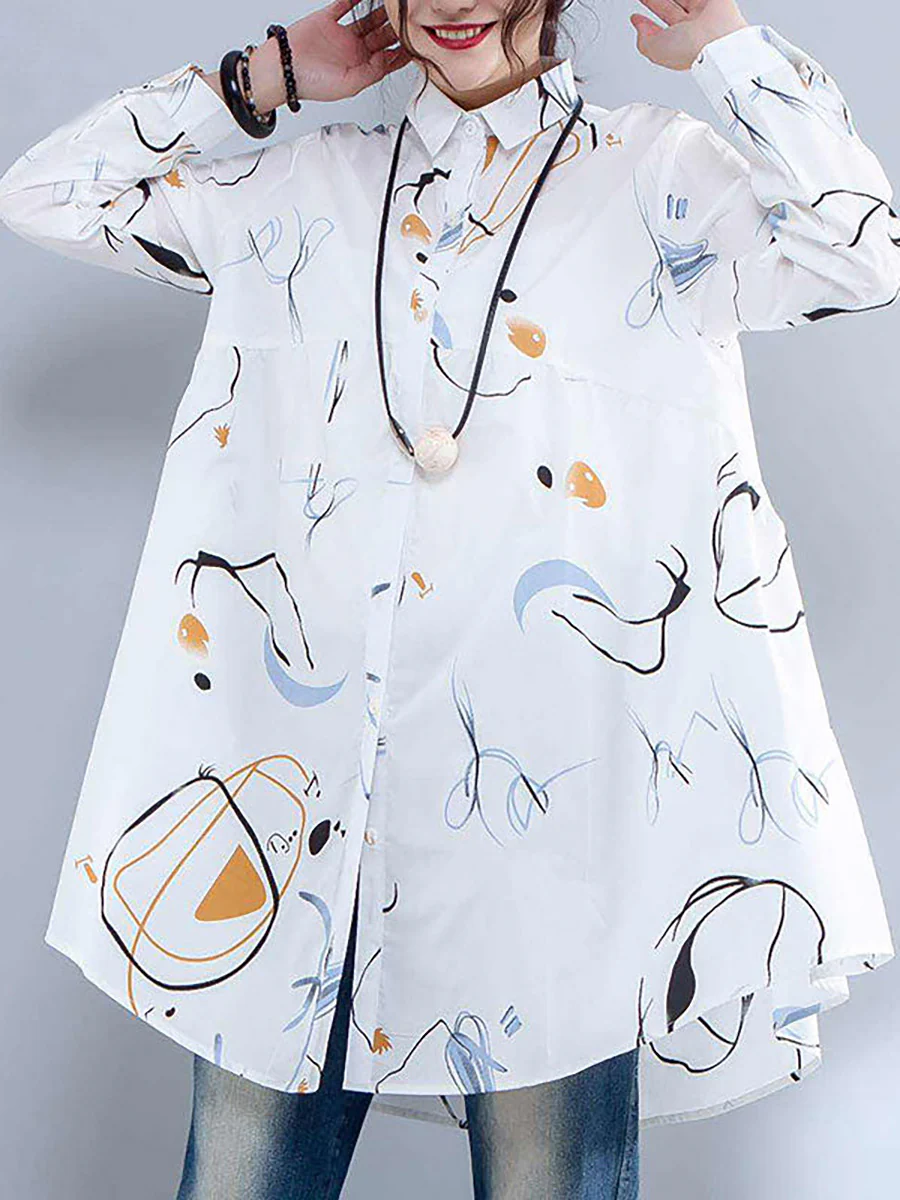 Plus Size Printed Single Breasted Polo Collar Shirt