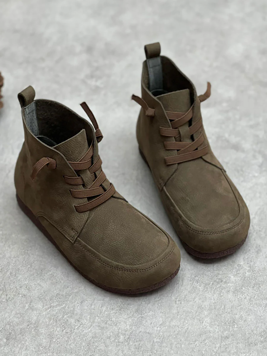 Women Vintage Drawstring Soft Leather Solid Ankle Boots