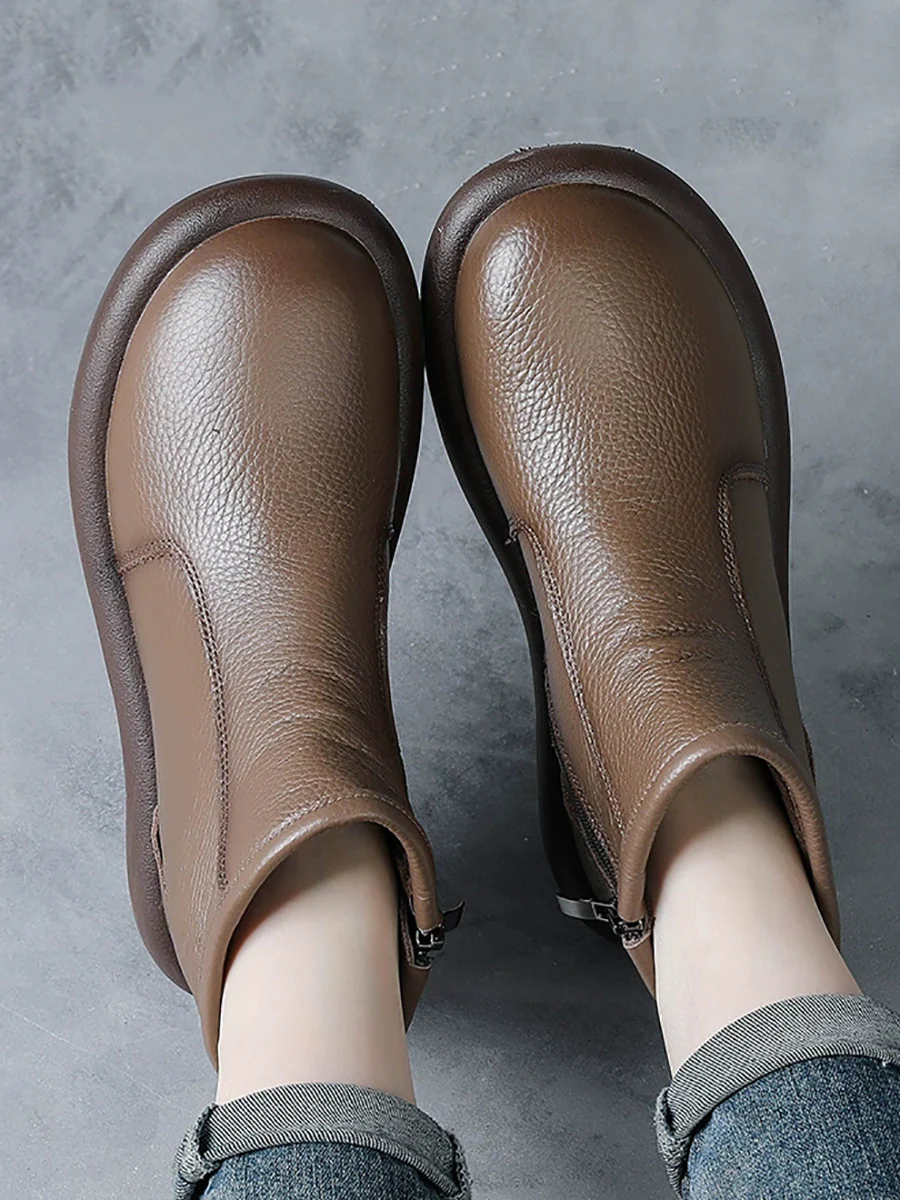Women Winter Genuine Leather Fleece-lined Ankle Boots